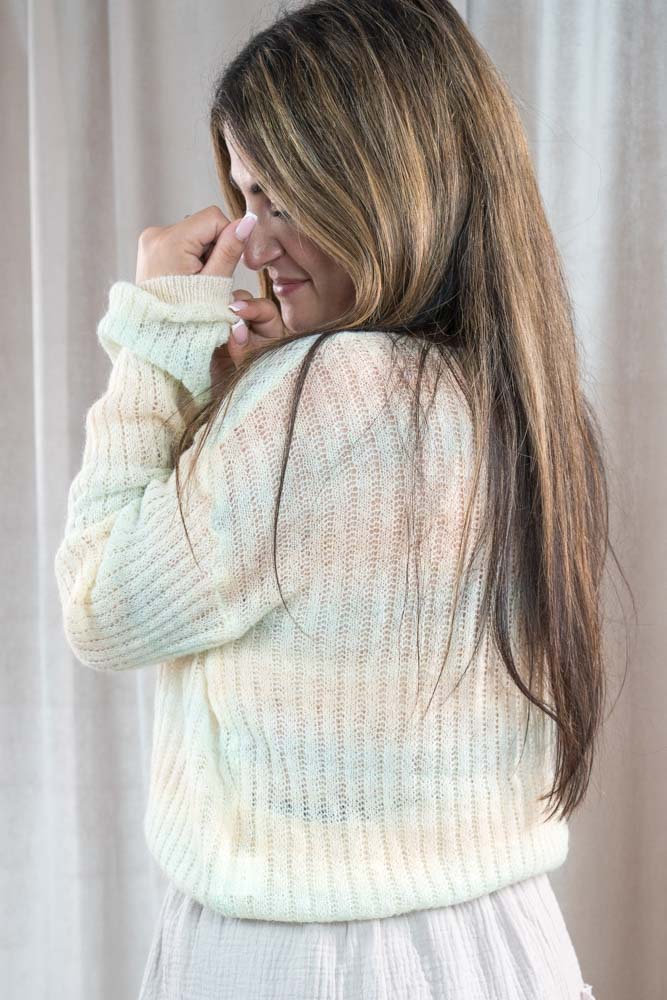 Super softer und leichter Strick Pullover aus Alpaka Kid Mohair mit Farbverlauf.