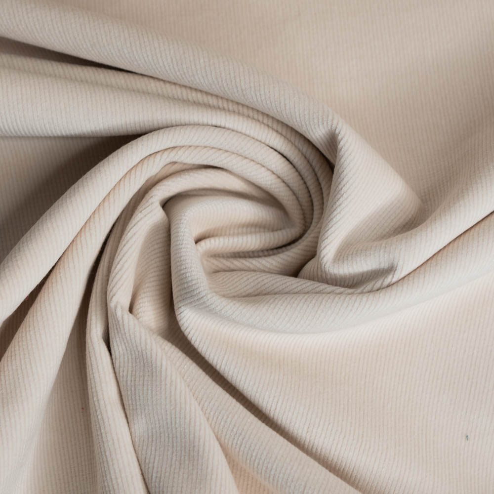 Ein edler BabyCord in sehr feinen und kleinen Rippen, der durch seine hochwertige Verarbeitung und durch sein Gewicht sehr robust ist. Er ist perfekt für Hosen; hält Strapazen sehr gut aus und ist spürbar elastisch.