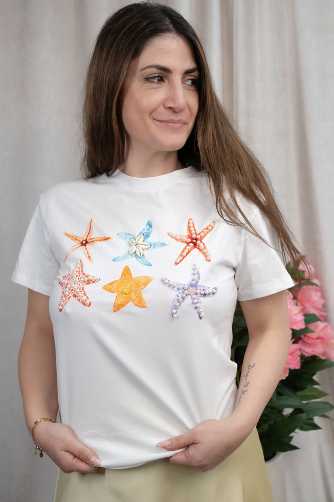 Baumwoll T-Shirt Seestern & Muscheln weiß