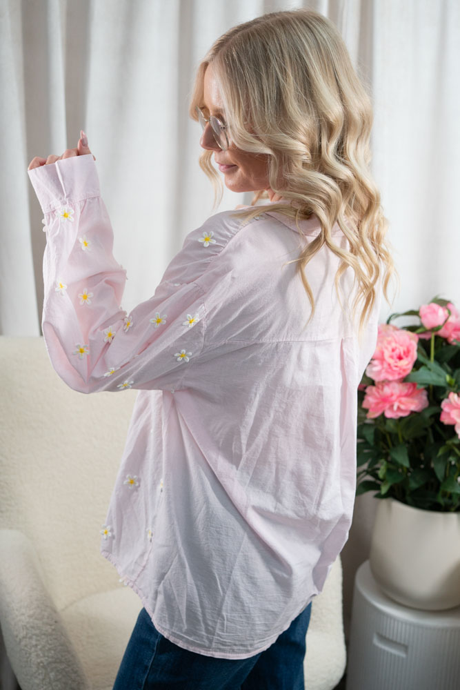 Ein wunderschöe Bluse aus 100% Baumwoll-Voile mit bestickten Gänseblümchen Applikationen.