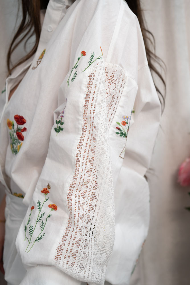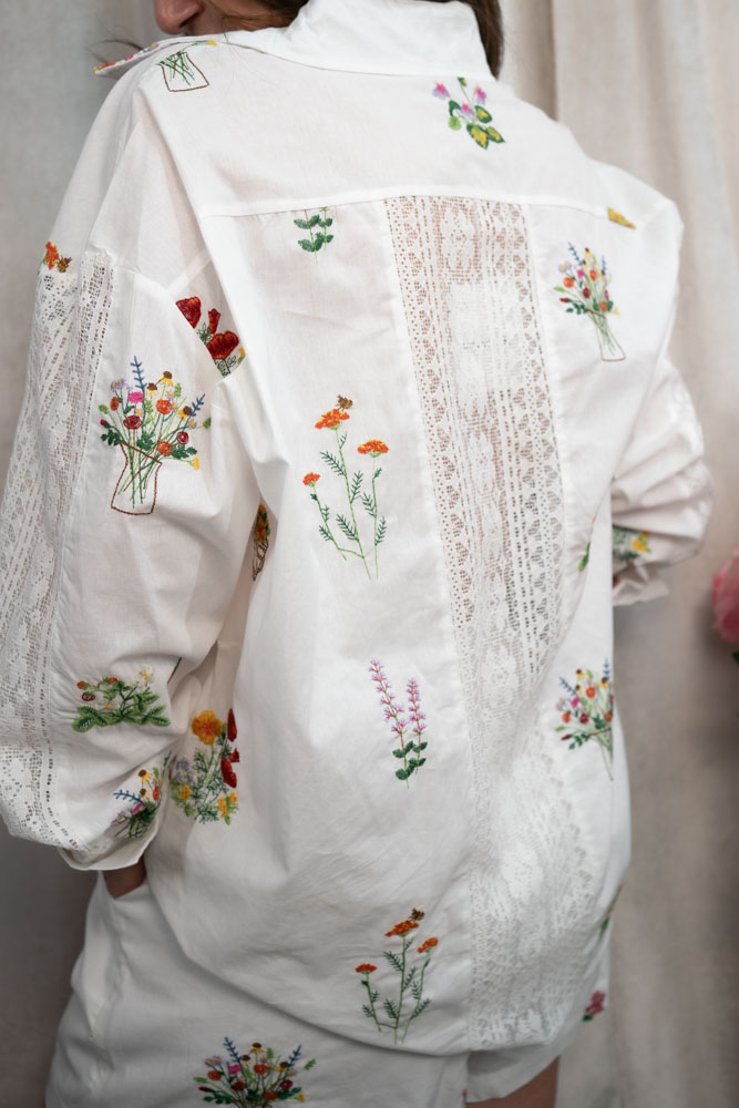 Ein wunderschöe Bluse aus 100% Baumwolle mit einer wunderschönen Blumen Stickerei. Passend zu der Baumwollshorts Stickerei - unten mit verlinkt-