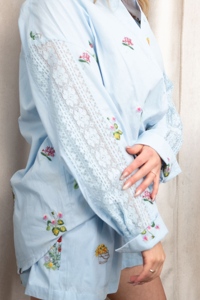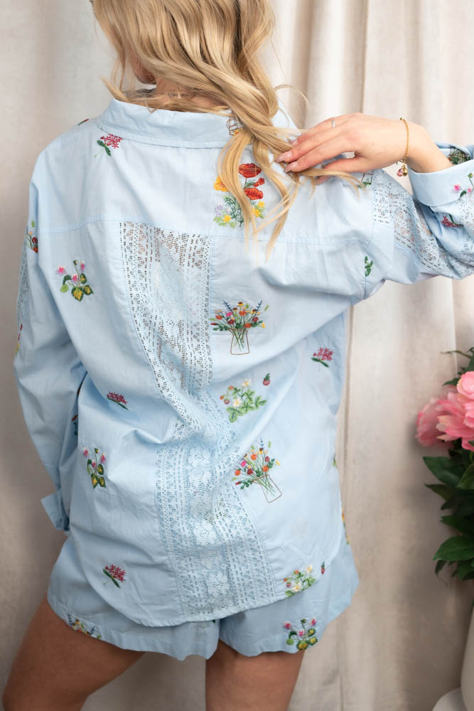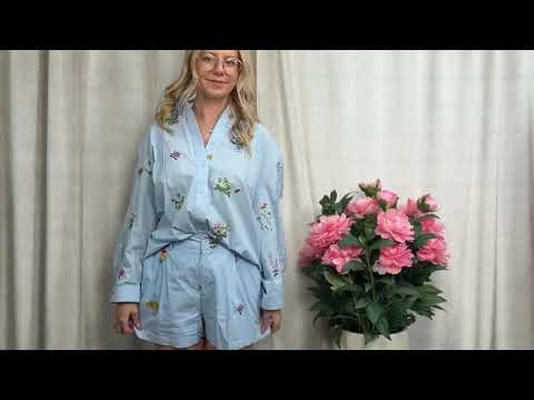 Ein wunderschöe Bluse aus 100% Baumwolle mit einer wunderschönen Blumen Stickerei. Passend zu der Baumwollshorts Stickerei - unten mit verlinkt-