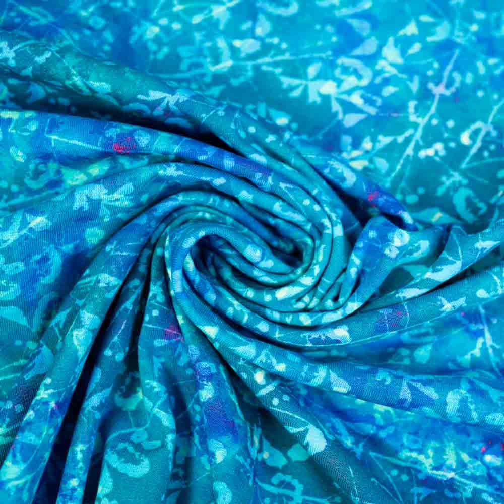 Baumwolljersey Aquarell Blümchenzweige türkis
