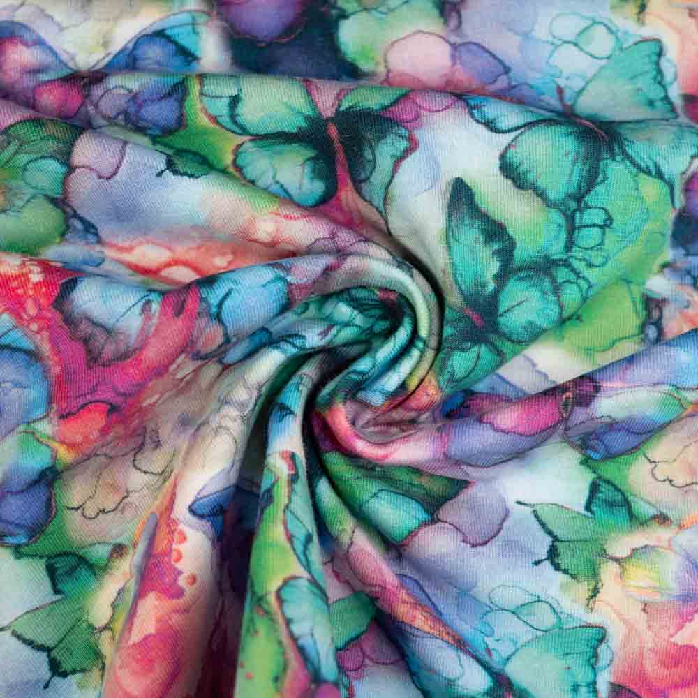 Baumwolljersey Aquarell Schmetterling mint