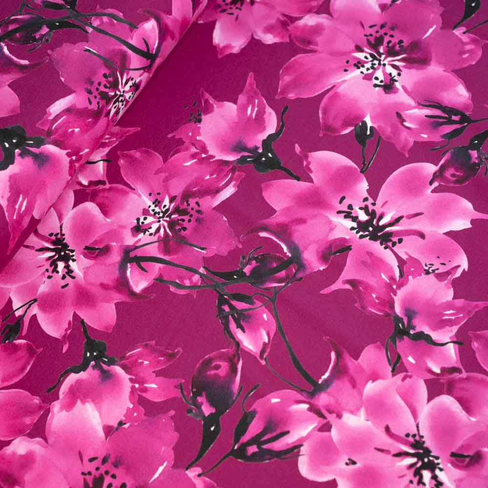 Baumwolljersey aquarelliger Blütentraum beere dunkel