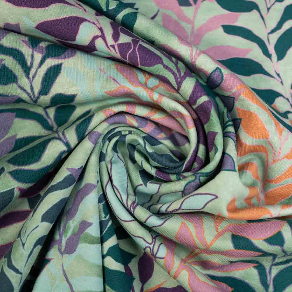 Baumwolljersey Blätterranken salbei