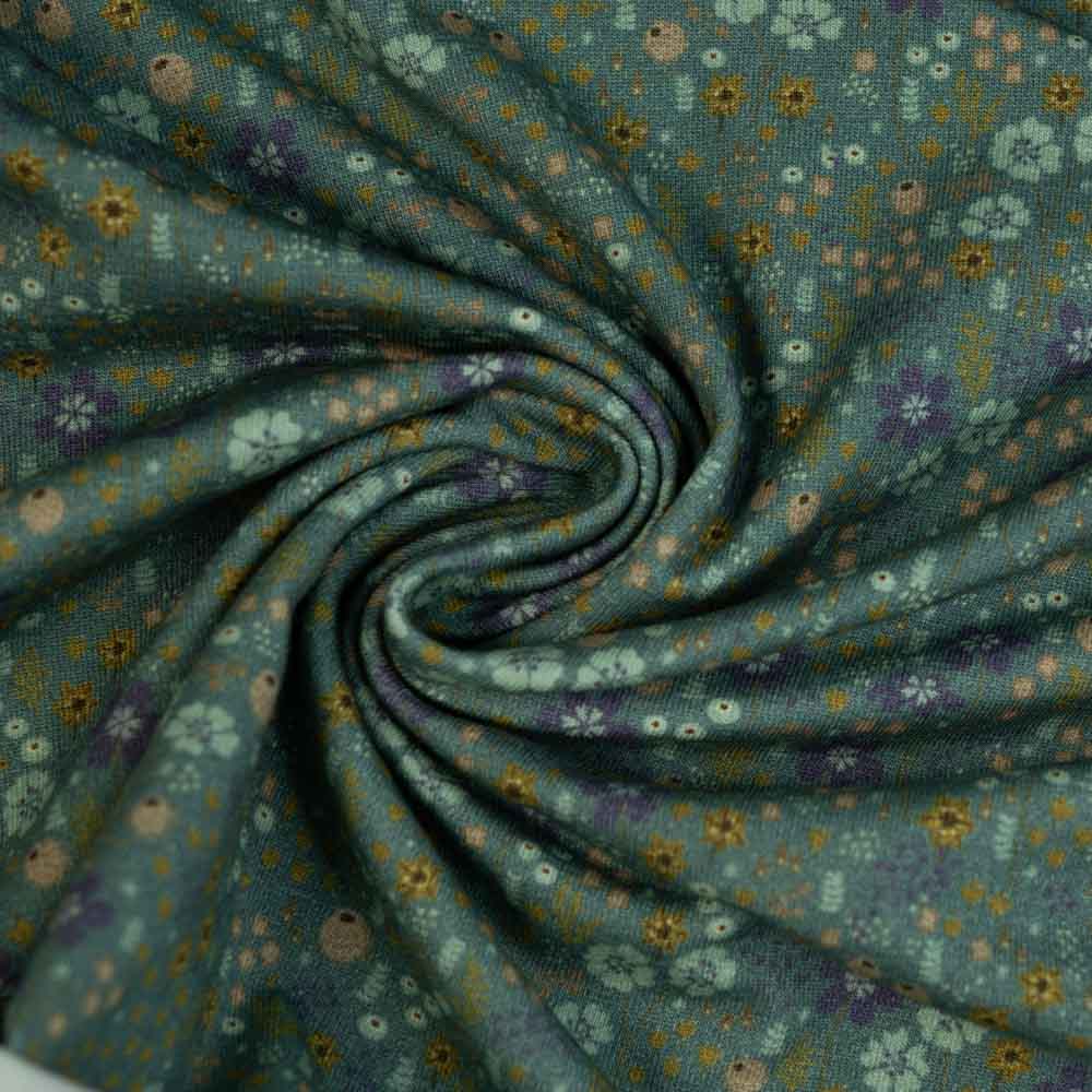 Baumwolljersey Blümchenregen dusty mint