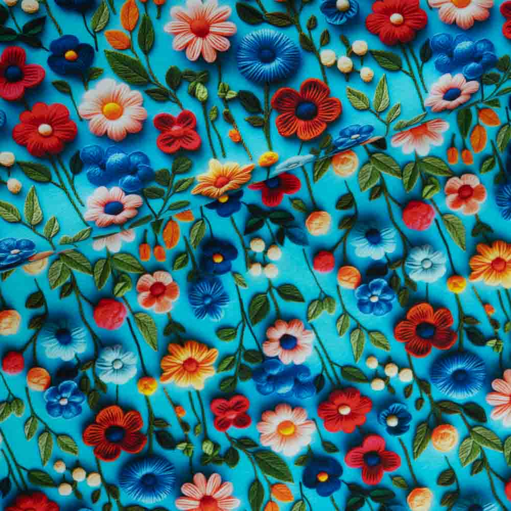 Baumwolljersey Blumen gehäkelt türkis