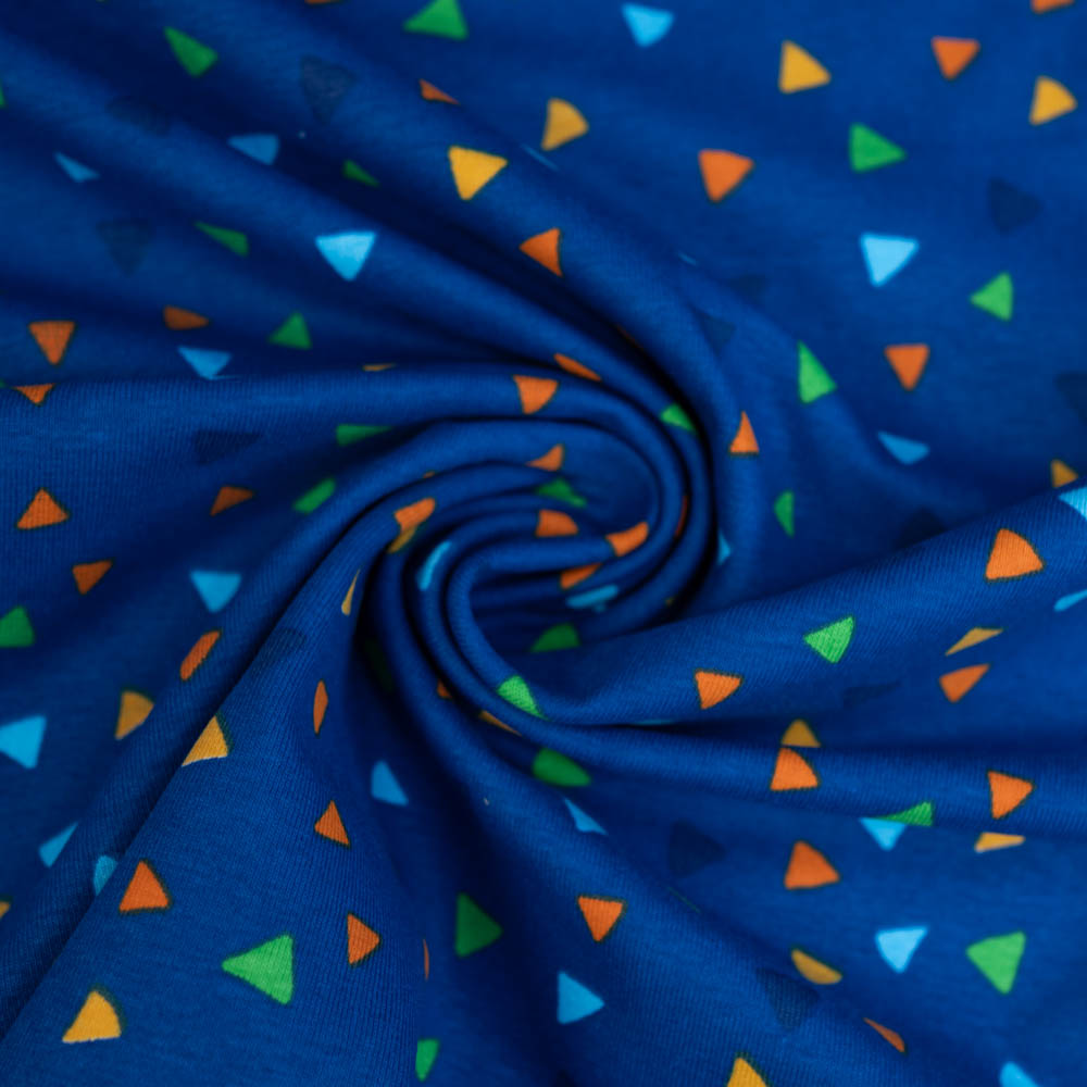 Baumwolljersey Bunte Dreiecke dunkelblau