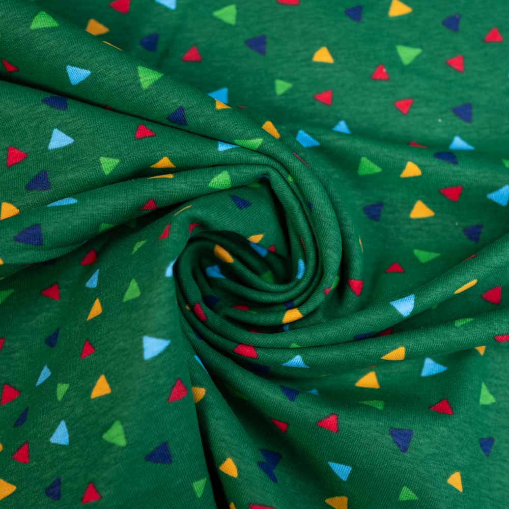 Baumwolljersey Bunte Dreiecke dunkelgrün