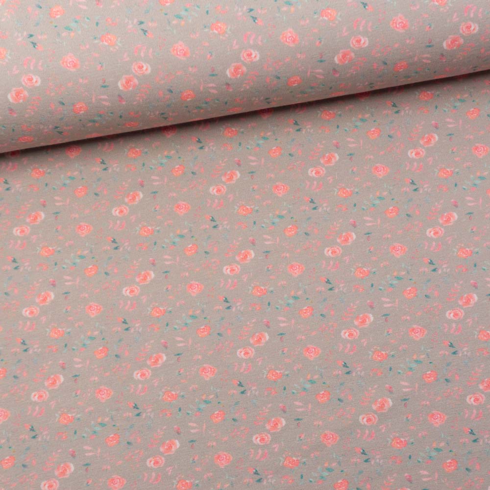 Baumwolljersey Digital Kleine Rosen hellgrau