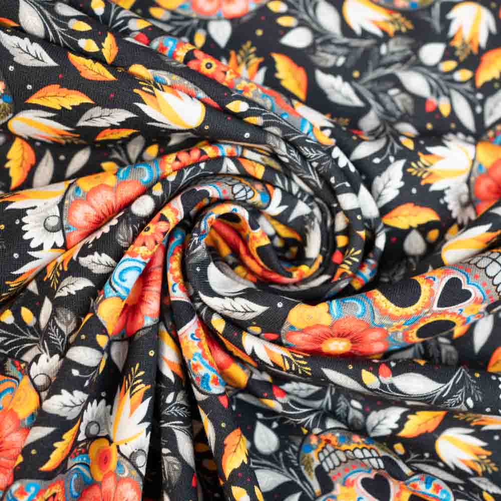 Baumwolljersey Floral Scull schwarz