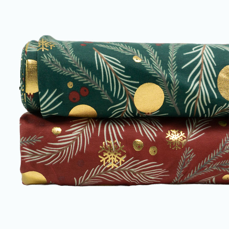 Baumwolljersey Foil Print Christmas Bells tannengrün