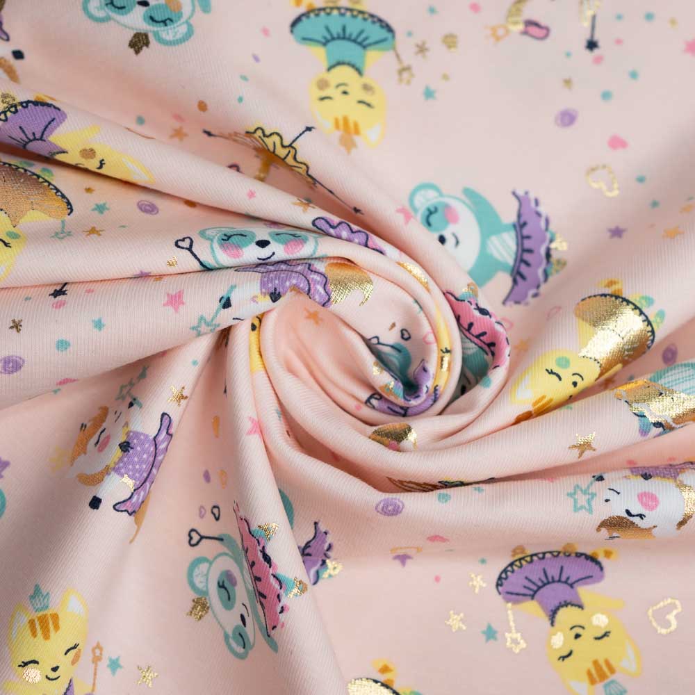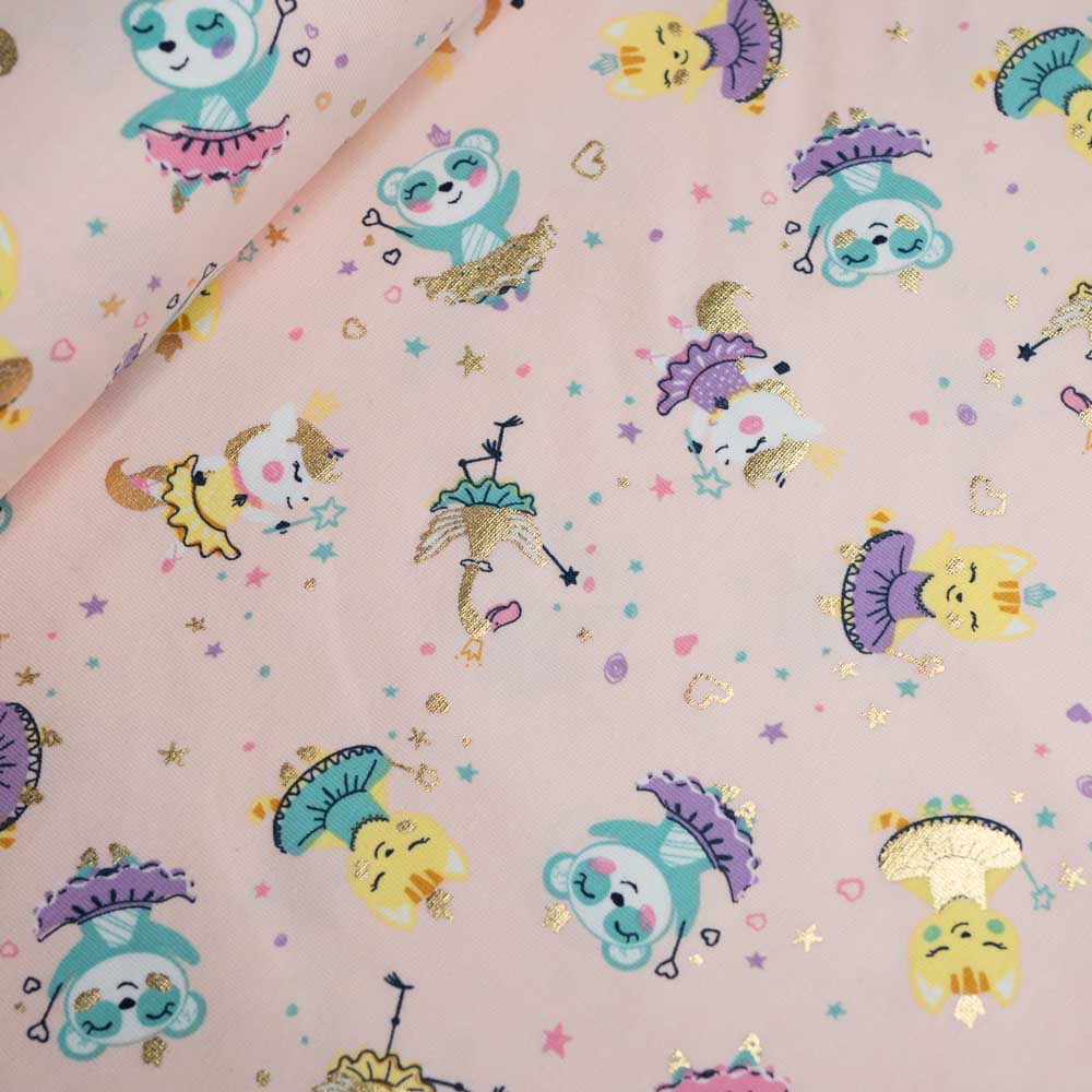 Baumwolljersey Folienprint Ballerina Tiere rosa