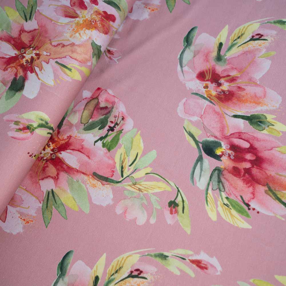 Baumwolljersey große Blumen altrosa