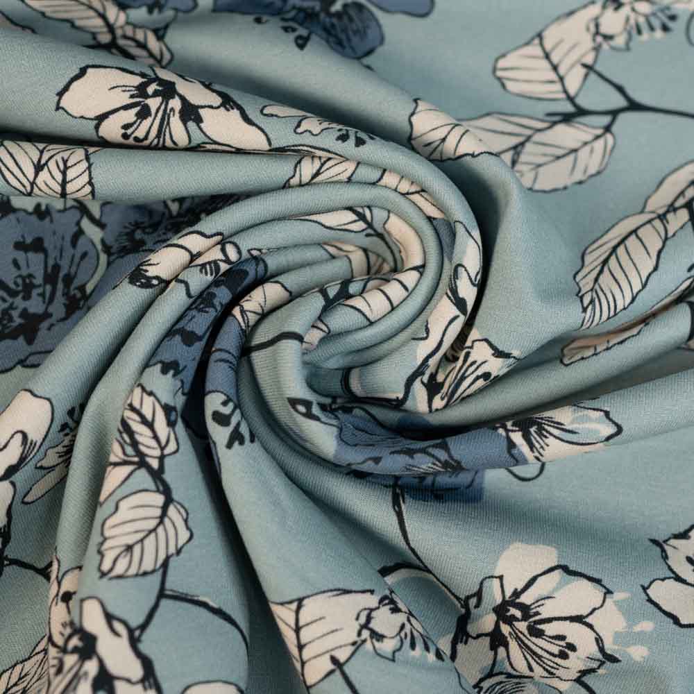 Baumwolljersey Kirschblüten rauchblau