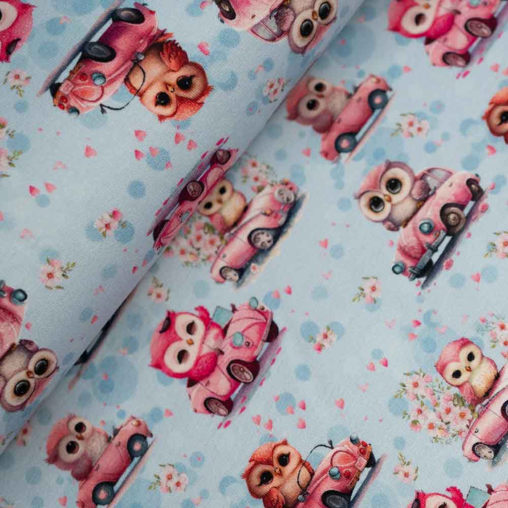 Baumwolljersey kleine Eule blau