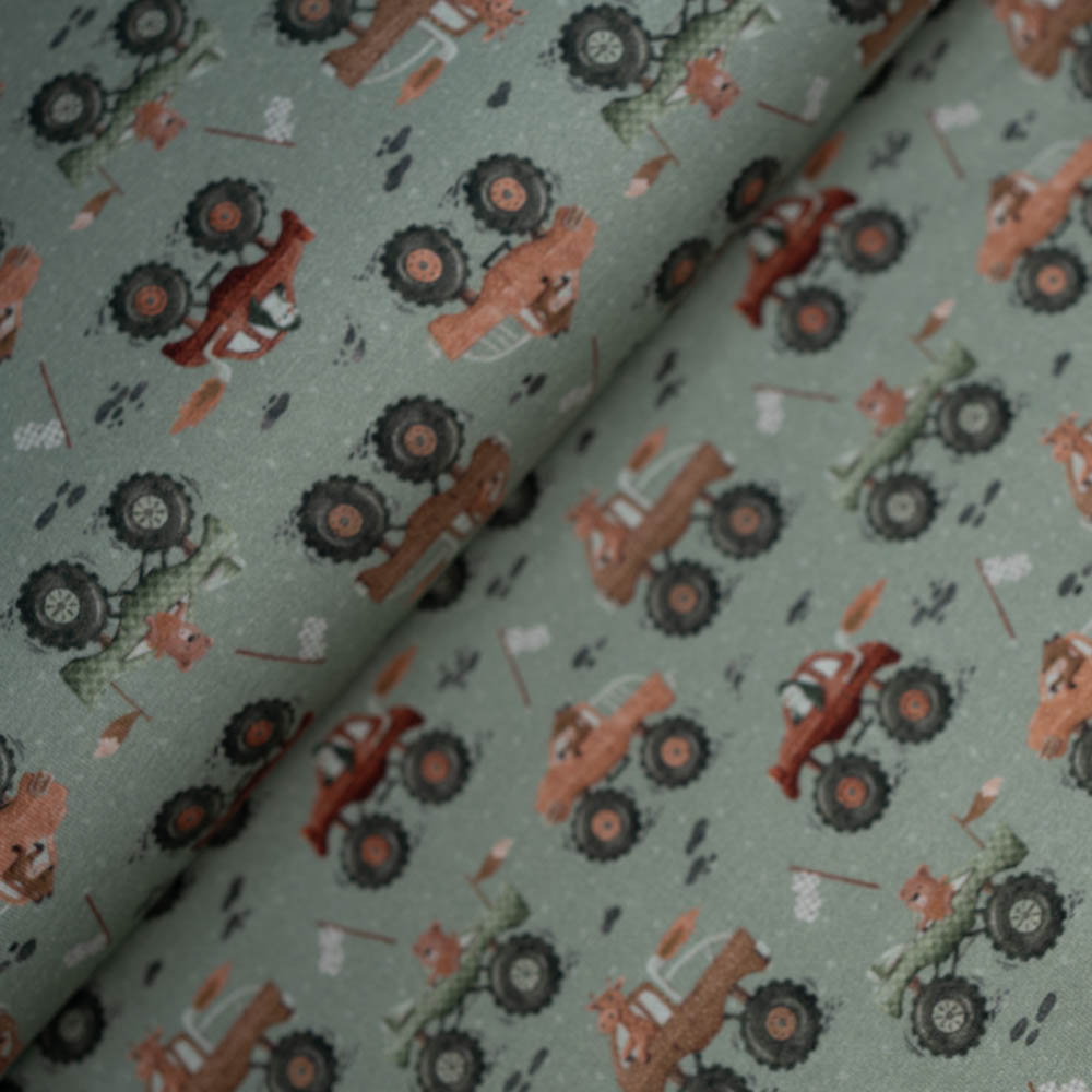 Baumwolljersey kleine Monstertrucks dusty mint