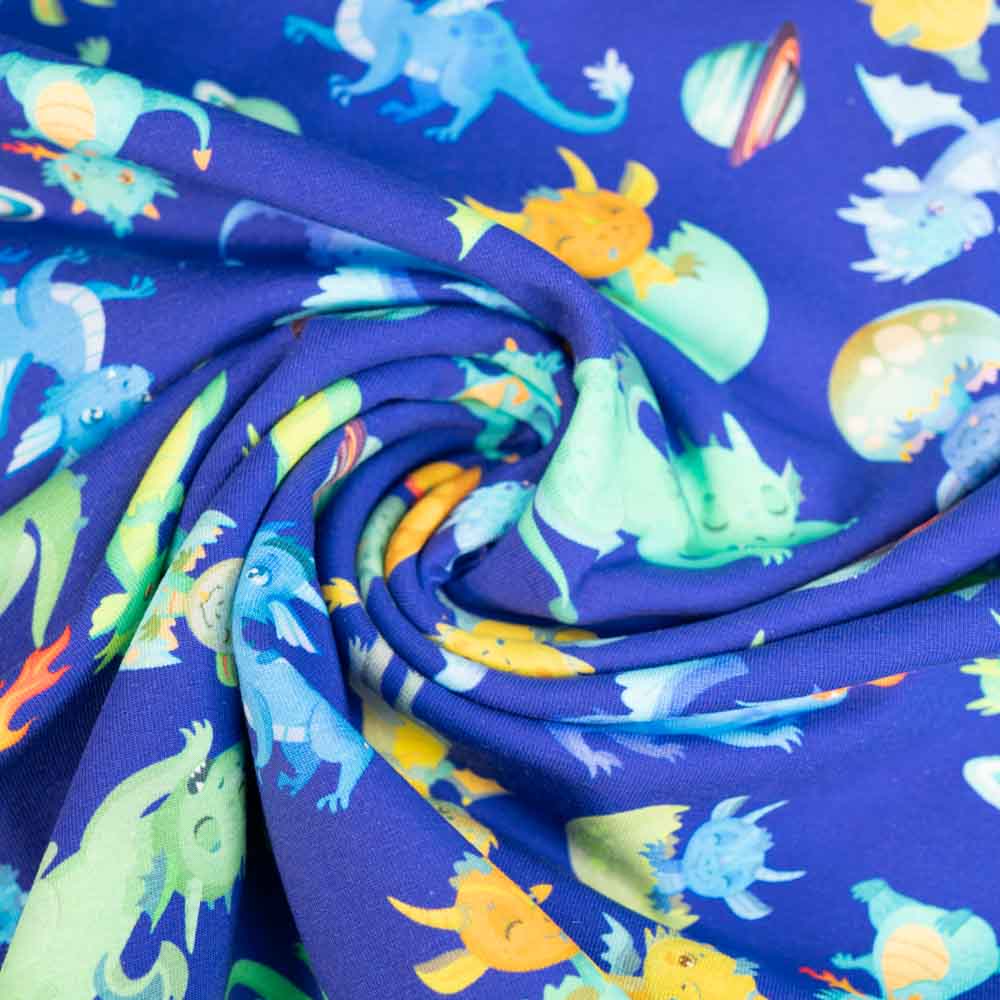Baumwolljersey kleiner Drache royalblau
