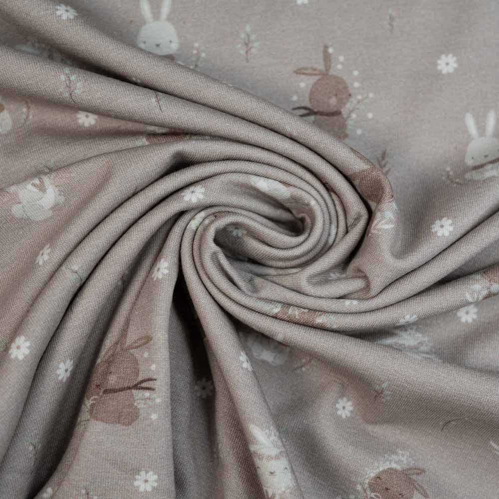 Baumwolljersey kleiner Hase taupe