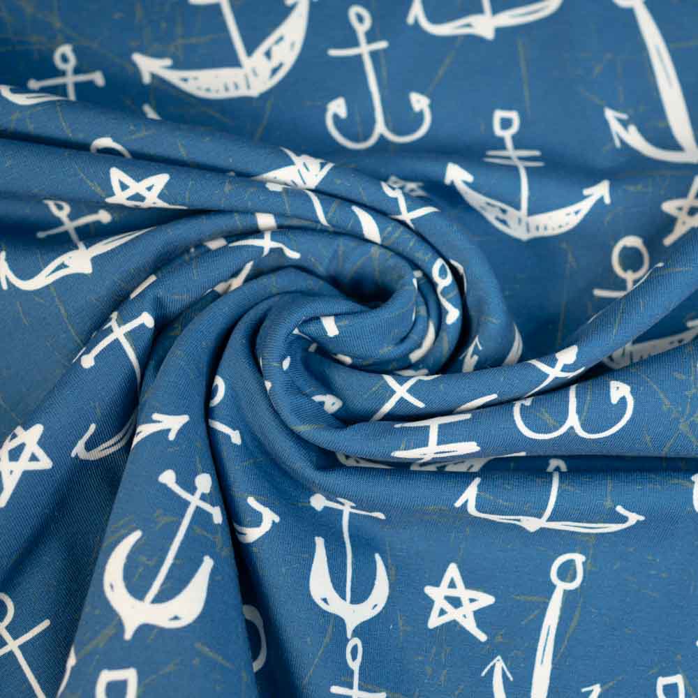 Baumwolljersey maritime Anker jeansblau