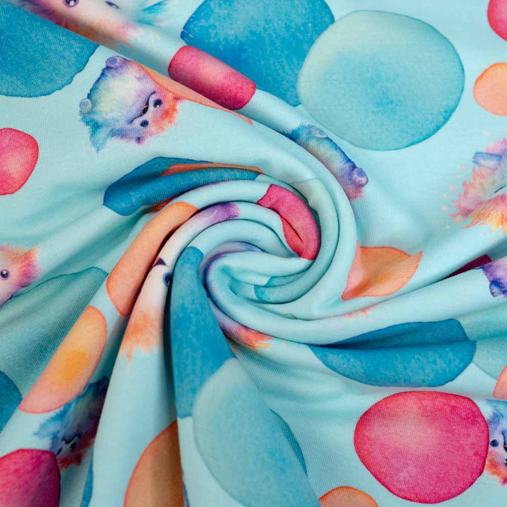Baumwolljersey Mini Monster & Seifenblasen hellblau