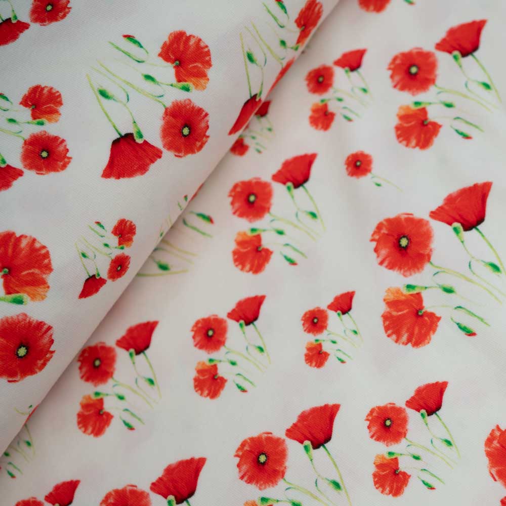 Baumwolljersey Mohnblüte ecru