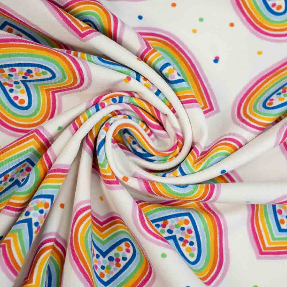 Baumwolljersey Regenbogen Herzen ecru