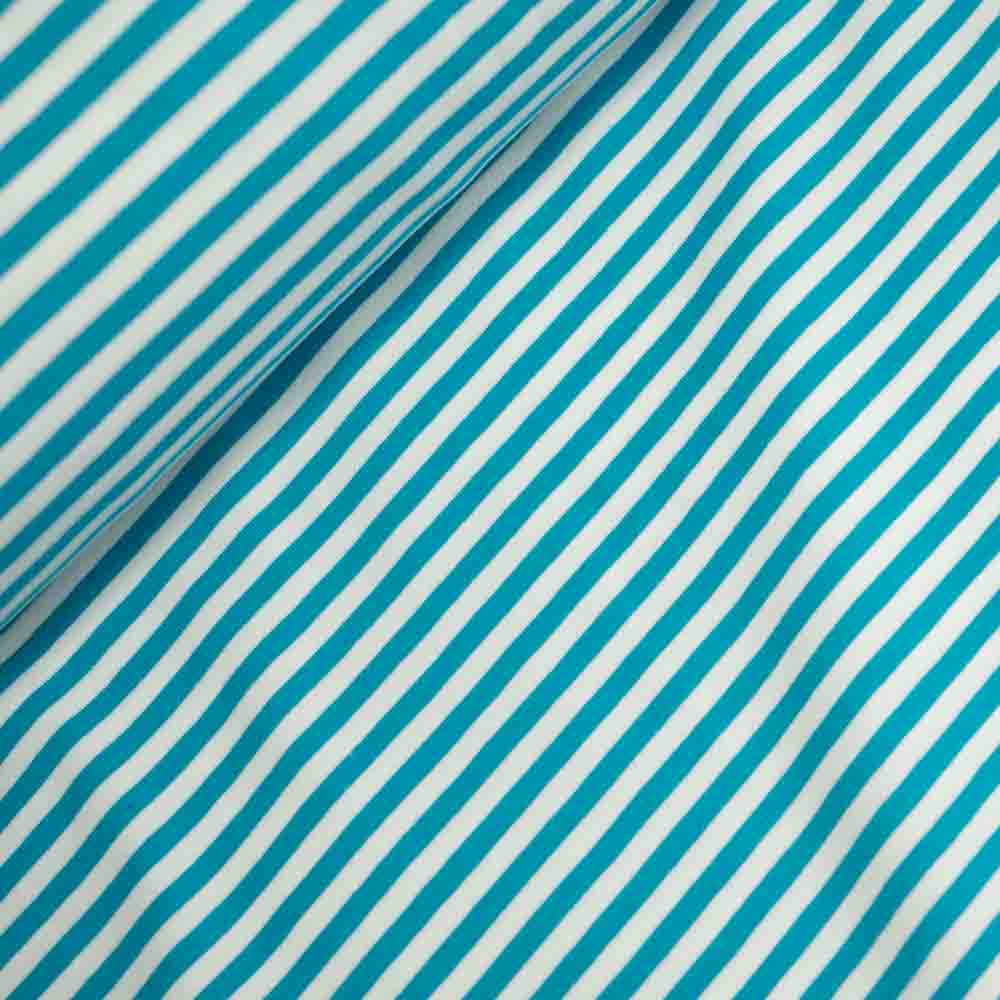 Baumwolljersey Streifen türkis-weiß