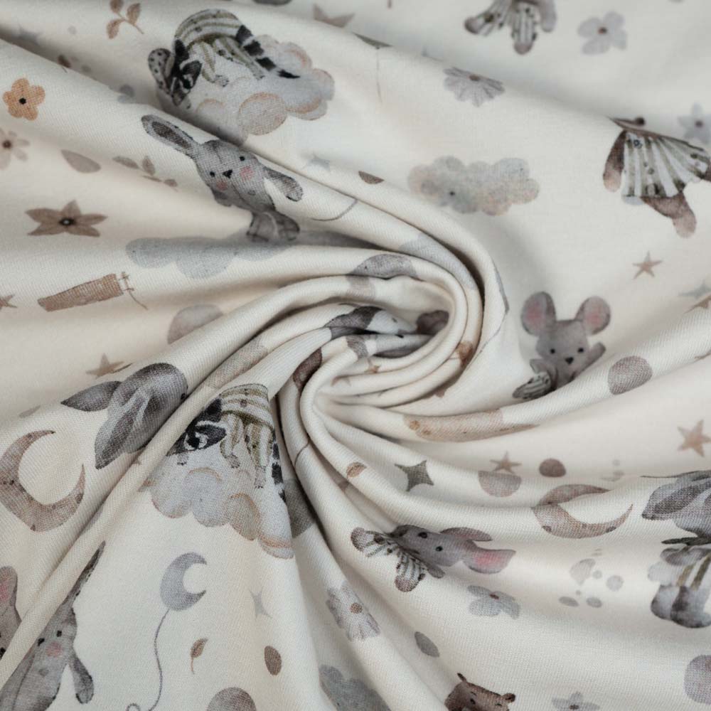 Baumwolljersey süße Tierchen ecru