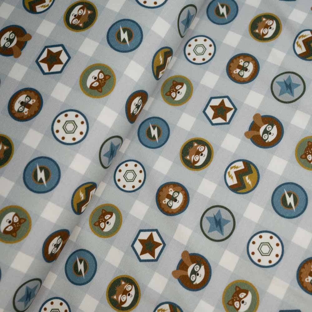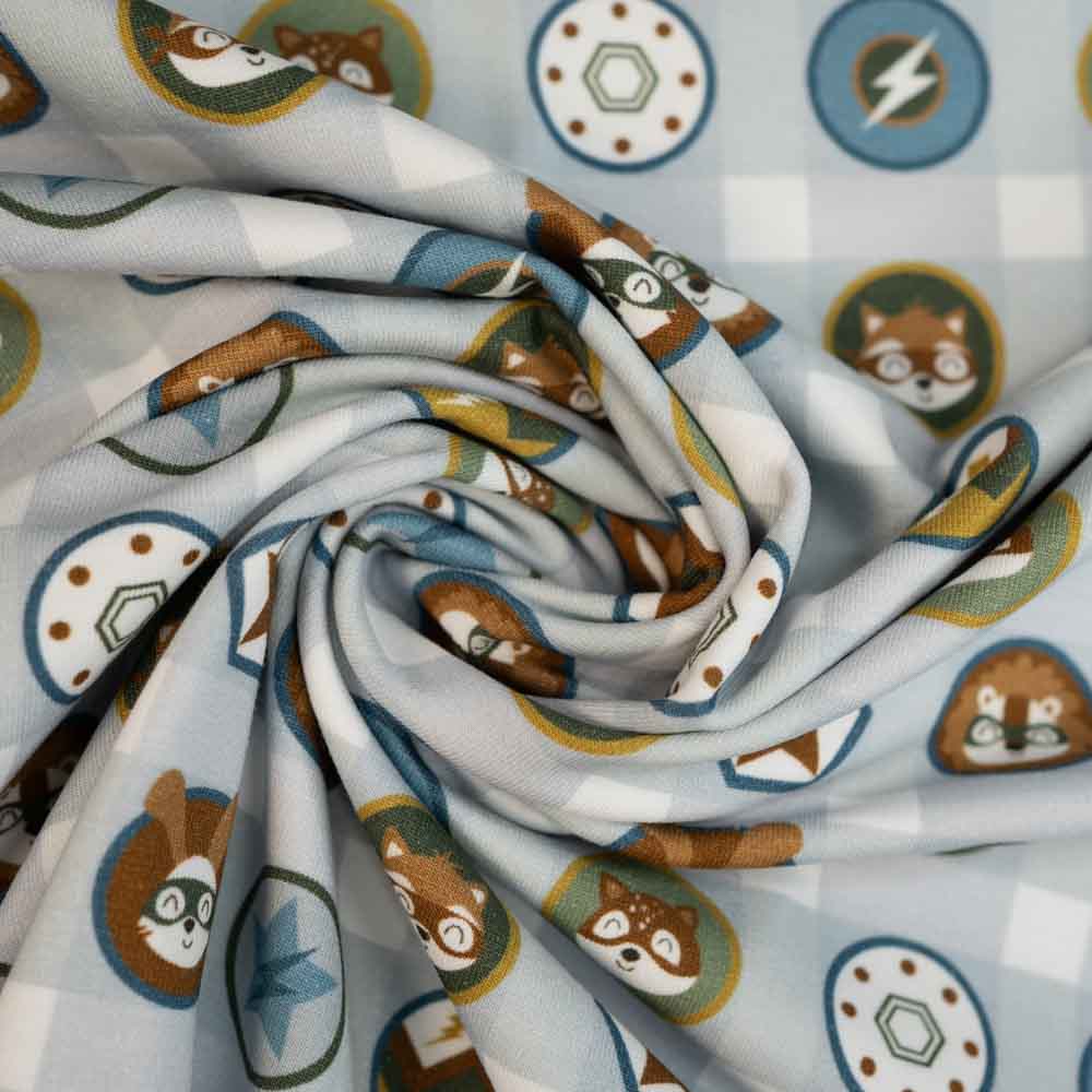 Baumwolljersey Tier Buttons hellblau