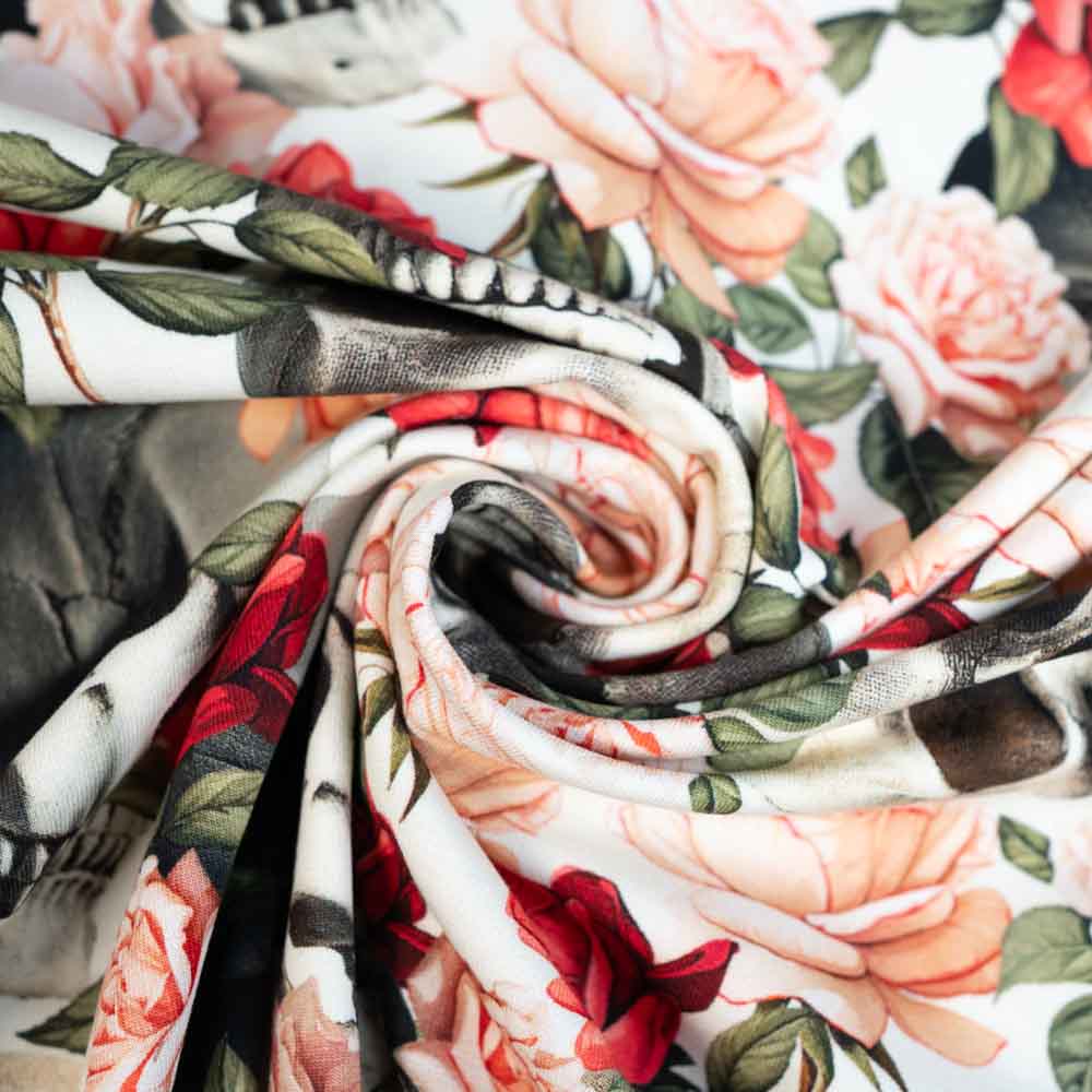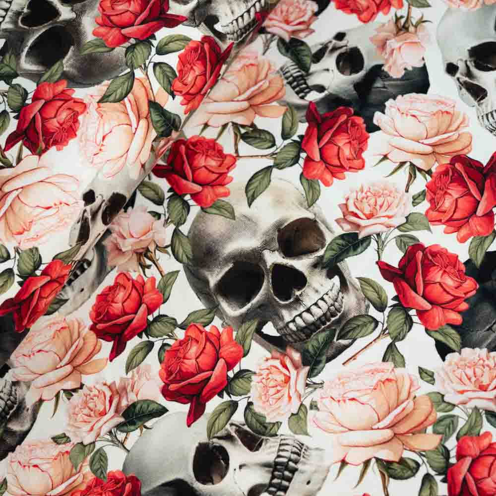 Baumwolljersey Totenkopf & Rosen ecru