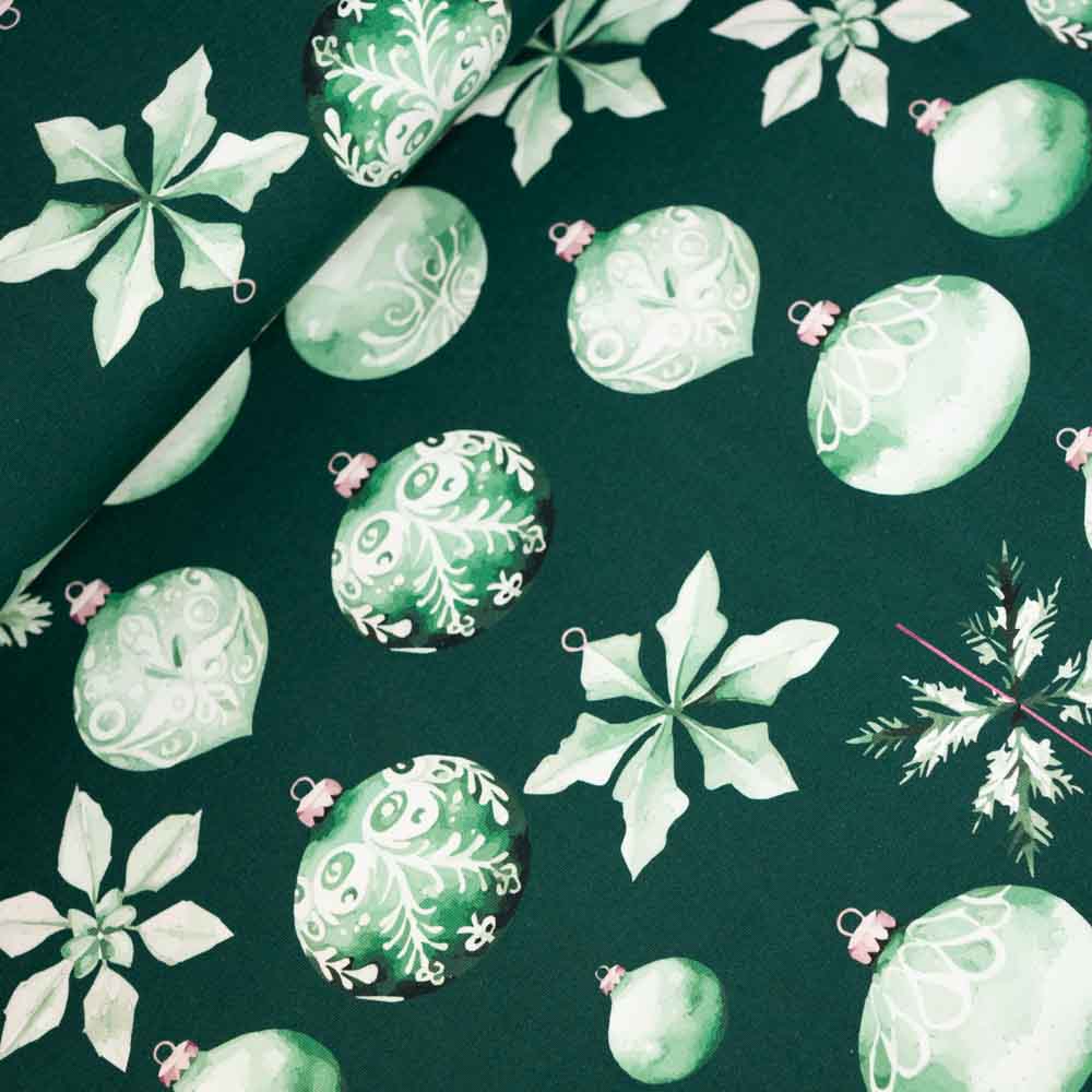 Baumwolljersey X-Mas Kugeln tannengrün