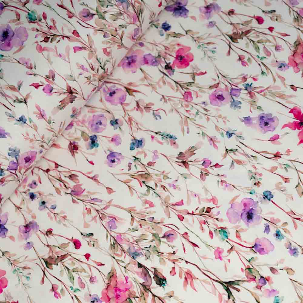 Baumwolltwill Stretch Aquarellblümchen Zweige pink