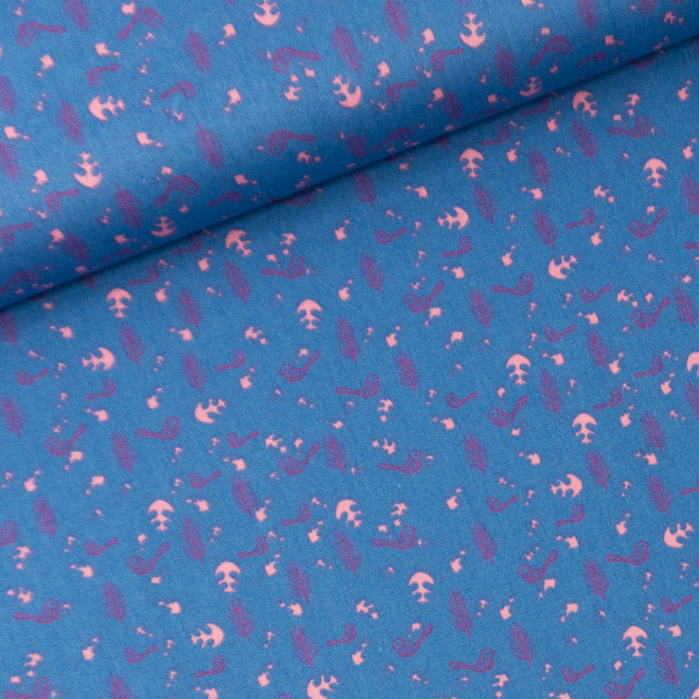 Baumwollwebware Kleiner Vogel jeansblau