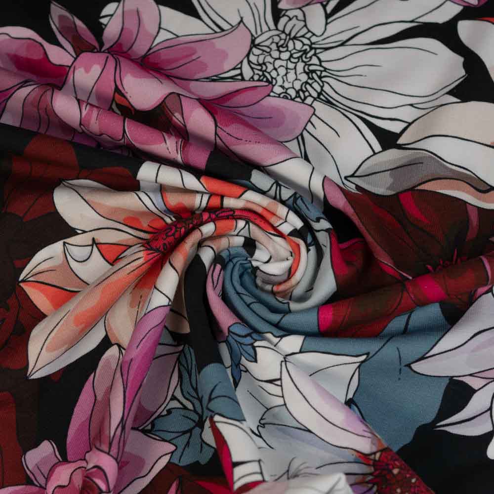 Bio Baumwolljersey Aquarell Blumen rot-beere