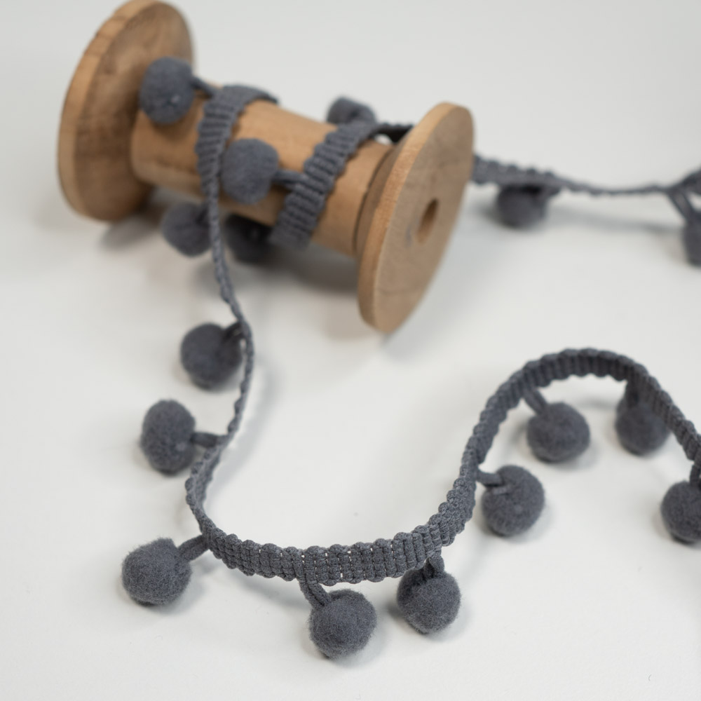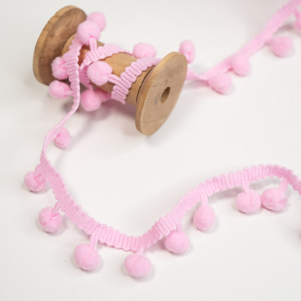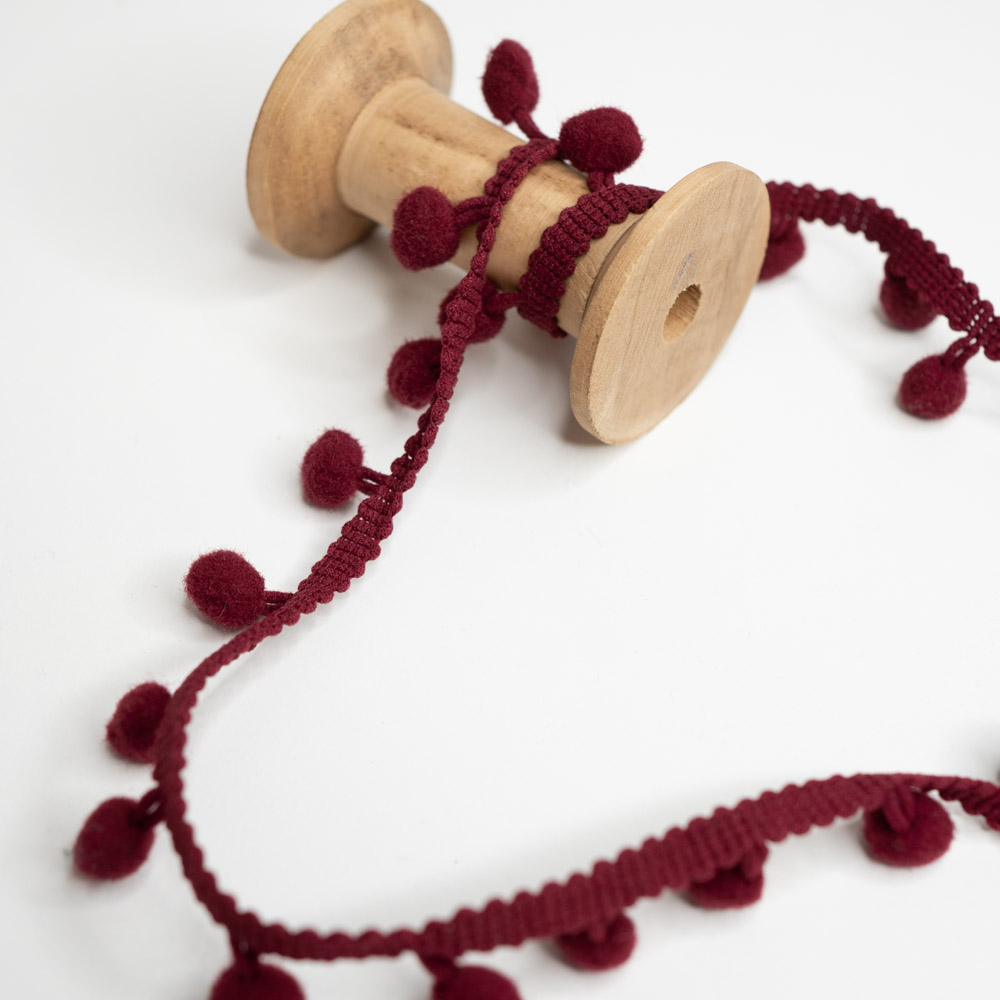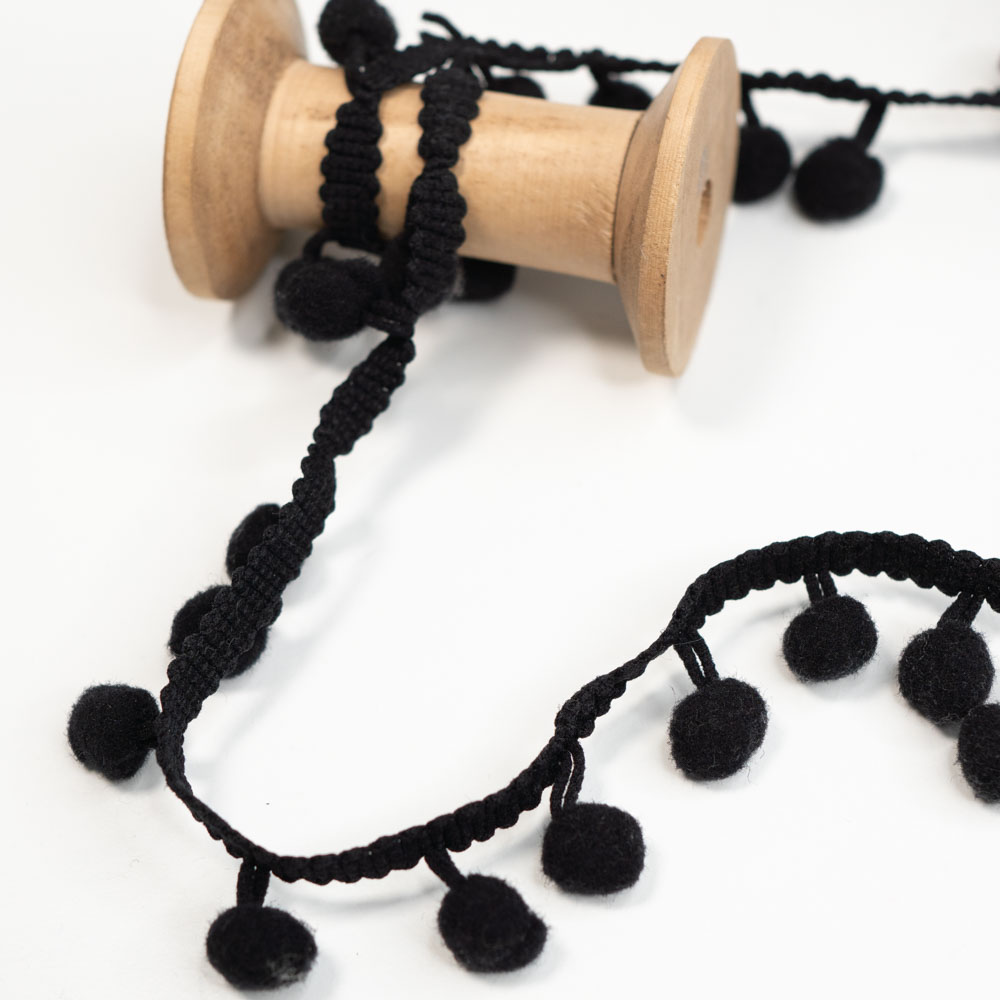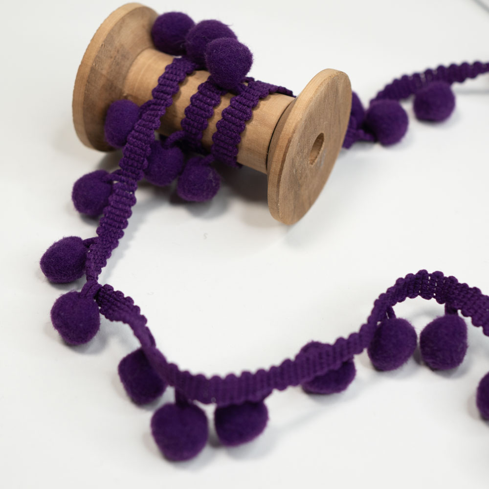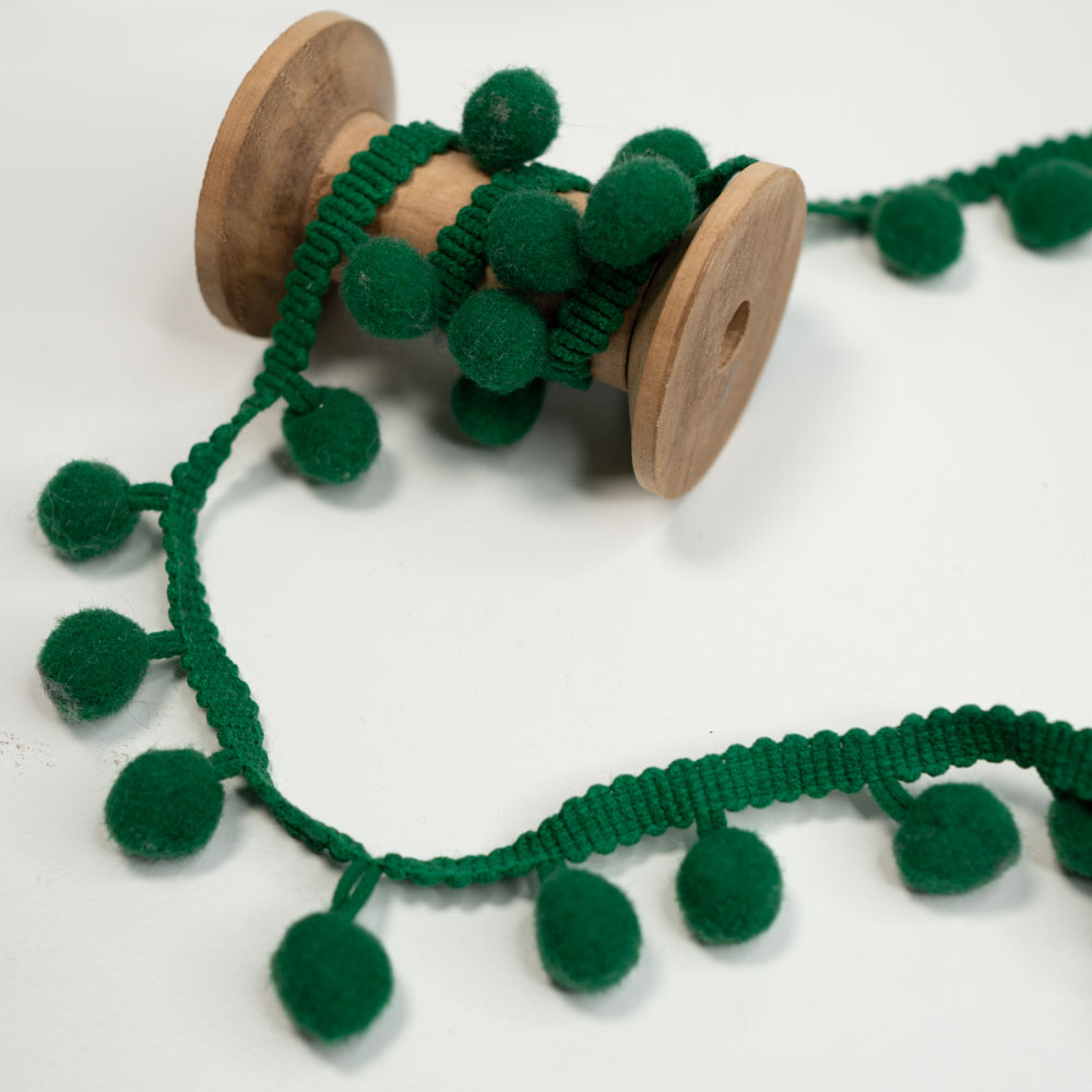 Eine hochwertige Bommelborte zum Verzieren von Kleidung, Heimtextilien und Bastelprojekten. Ob an Vorhängen, Kissen, Taschen oder sogar an festlicher Dekoration – die Einsatzmöglichkeiten sind nahezu unbegrenzt. Unsere Bommelborte ist in verschiedenen Farben und Größen erhältlich. Sie ist zudem einfach anzunähen und langlebig.