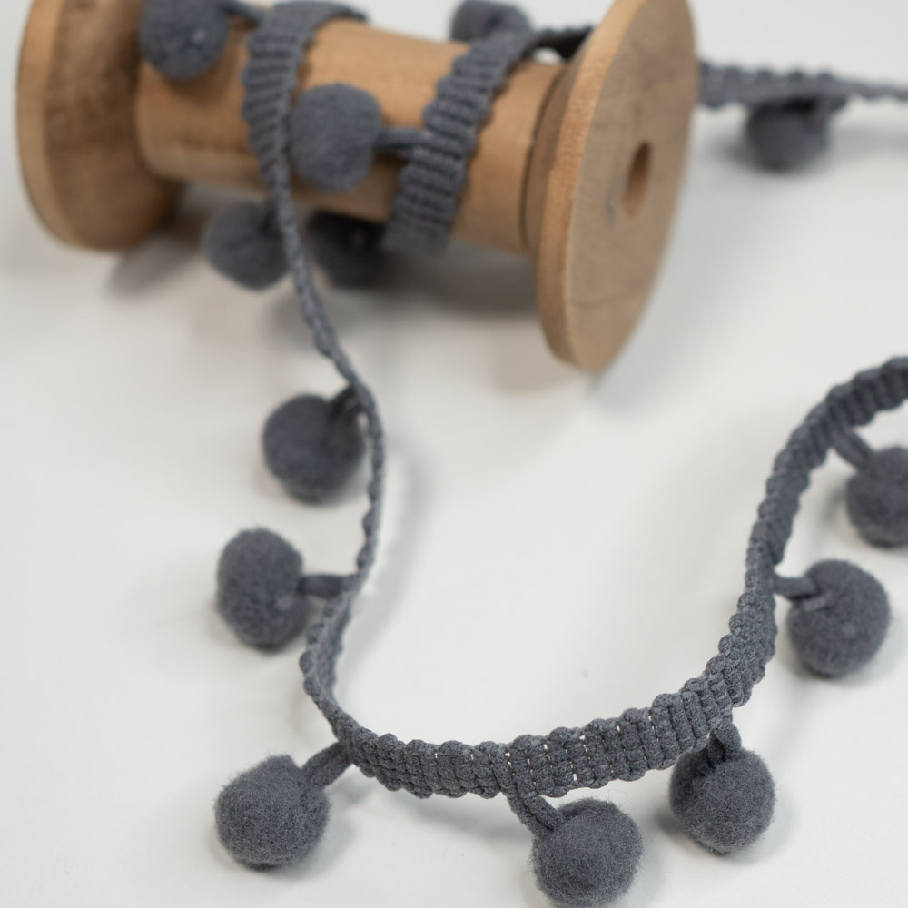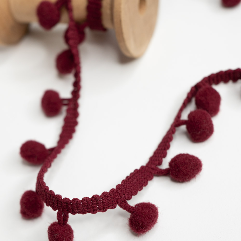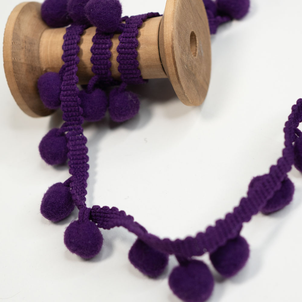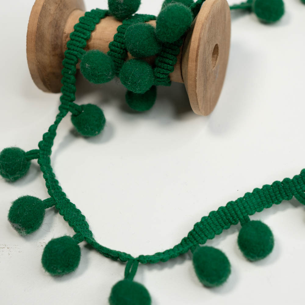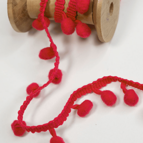 Eine hochwertige Bommelborte zum Verzieren von Kleidung, Heimtextilien und Bastelprojekten. Ob an Vorhängen, Kissen, Taschen oder sogar an festlicher Dekoration – die Einsatzmöglichkeiten sind nahezu unbegrenzt. Unsere Bommelborte ist in verschiedenen Farben und Größen erhältlich. Sie ist zudem einfach anzunähen und langlebig.
