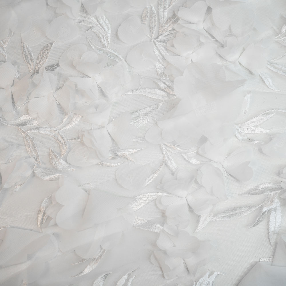 Brautkleidspitze 3D Blumenranken Stickerei ivory