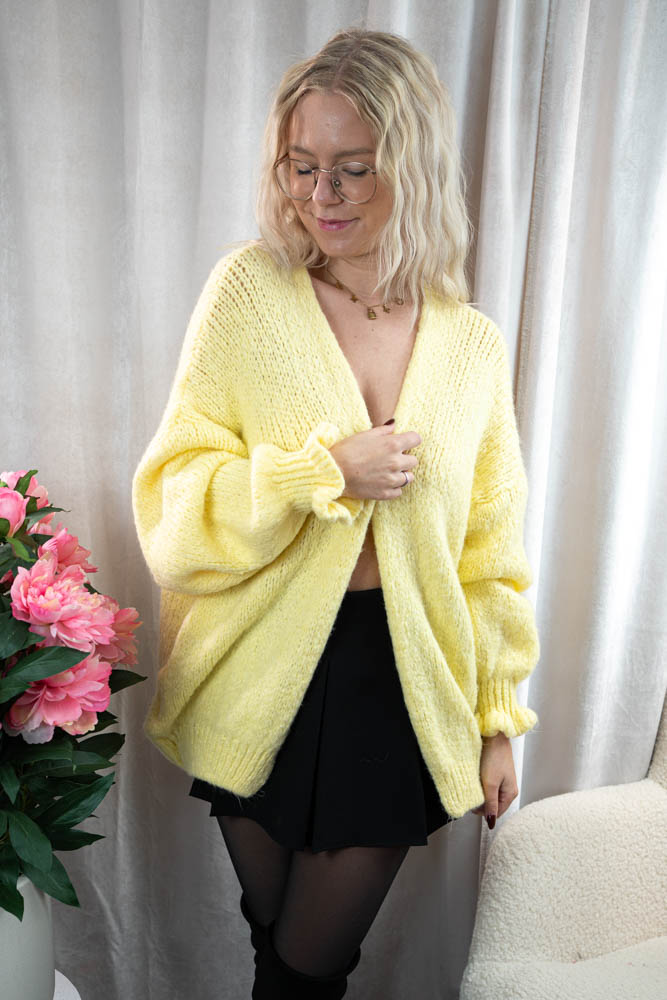 Super softer Oversized Strick Cardigan mit süßen Rüschenärmeln hergestellt in Italien.