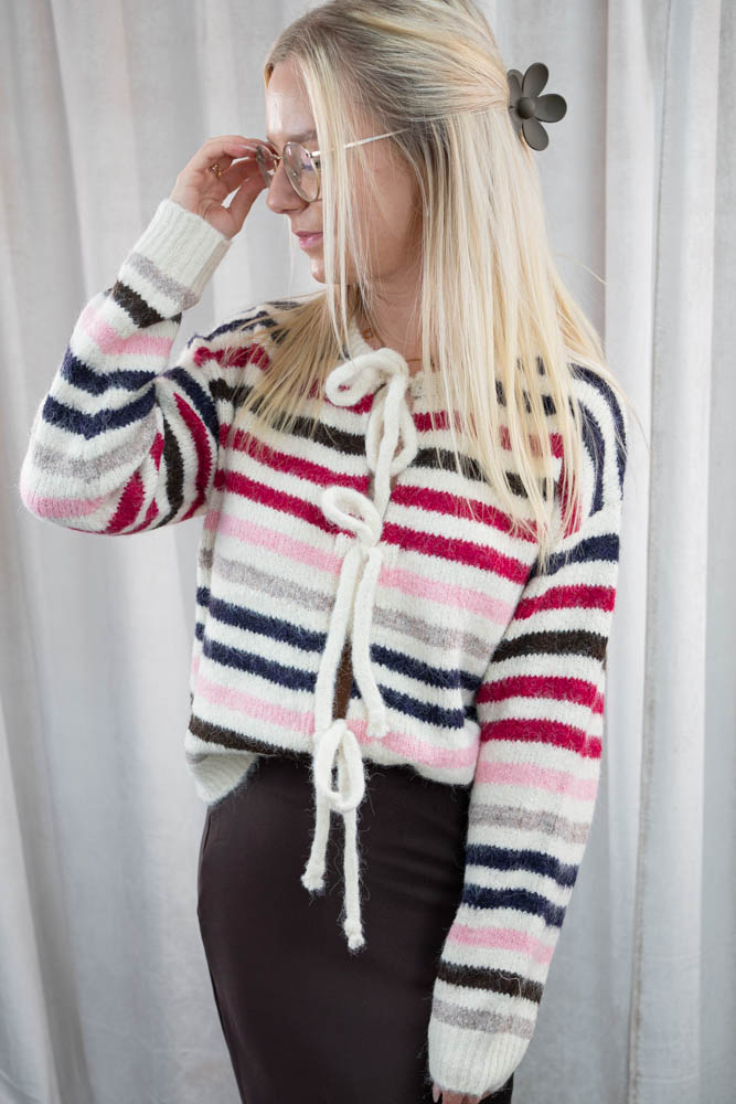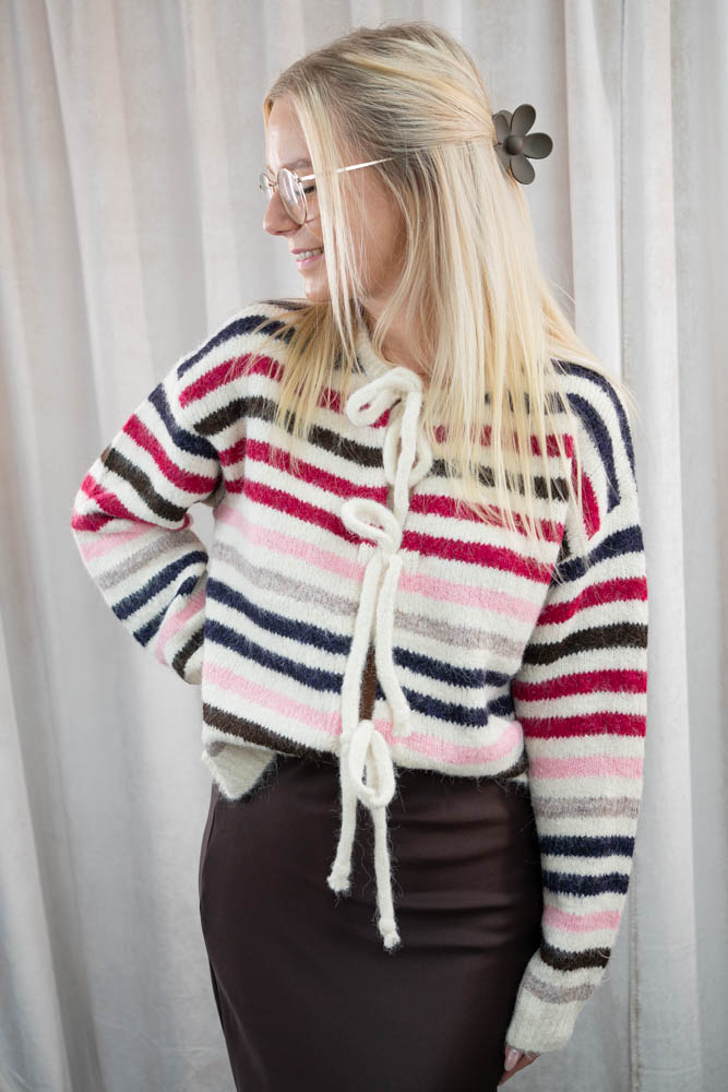 Schöner Strick Cardigan mit Streifen und Schleifendetails.