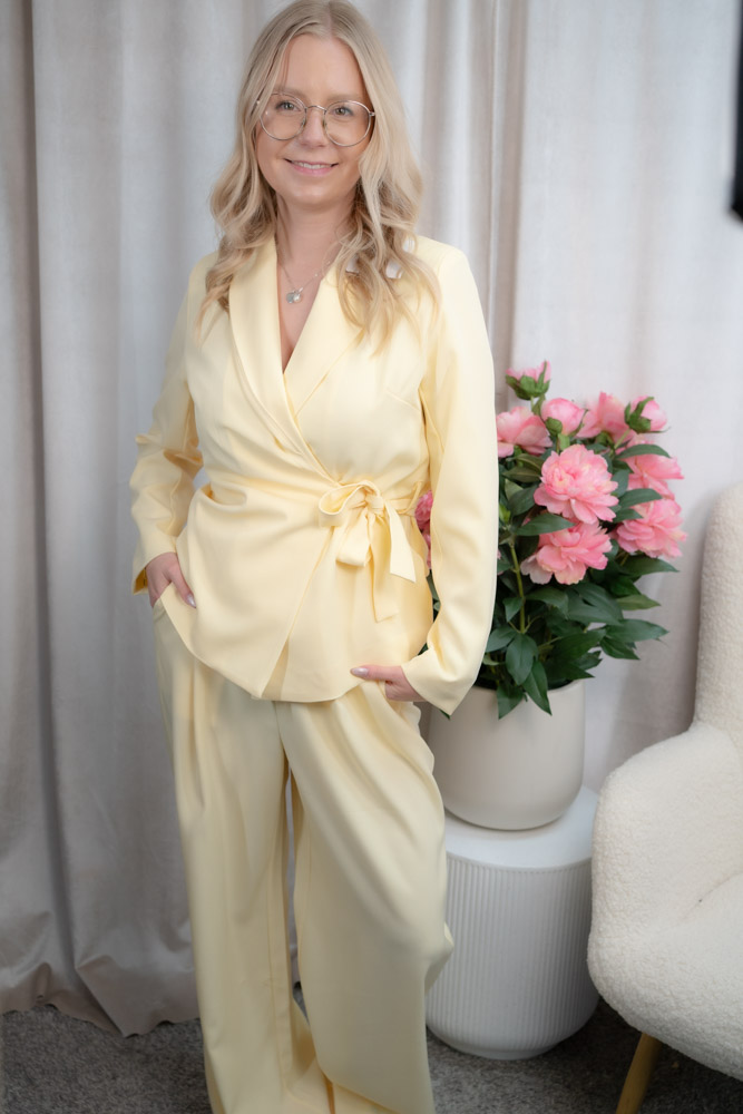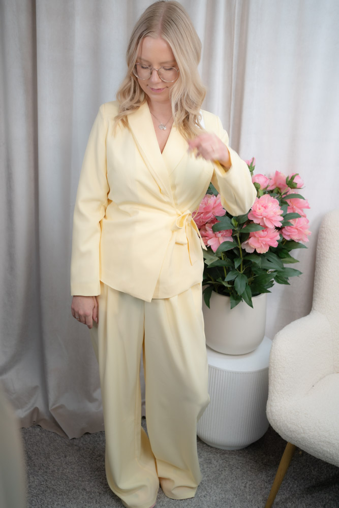 Ein wunderschöner eleganter Hosenanzug als Set. Ein Wickelblazer mit Band zum Knoten und einer Culotte mit Gummibund.