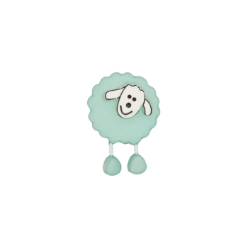 Süßer Kinder Deko-Knopf in niedlicher Schaf-Form-mit "Baumel-Beinchen" zu befestigen mit Öse.