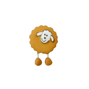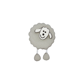 Süßer Kinder Deko-Knopf in niedlicher Schaf-Form-mit "Baumel-Beinchen" zu befestigen mit Öse.