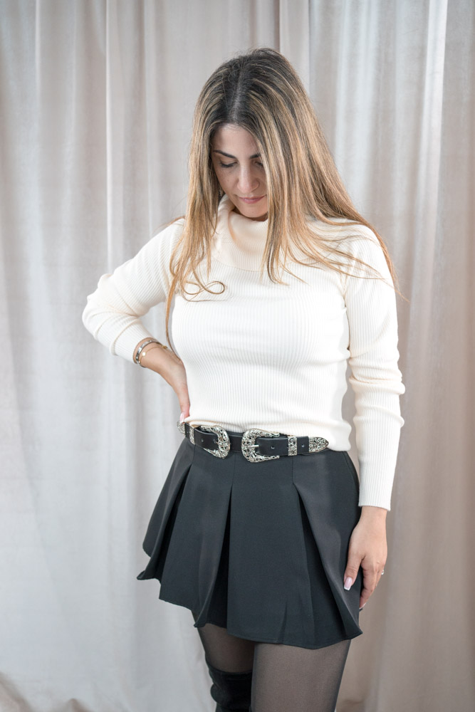 Schöner Rippstrick Pullover schulterfrei oder als Rollkragen tragbar.