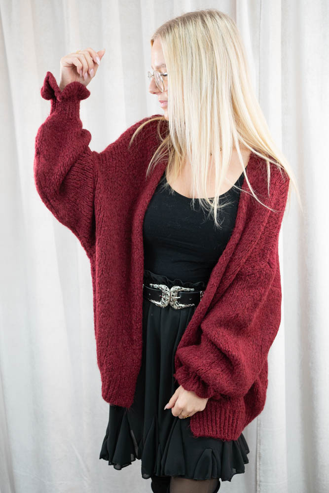 Cardigan mit Rüschenärmel SOFT bordeaux