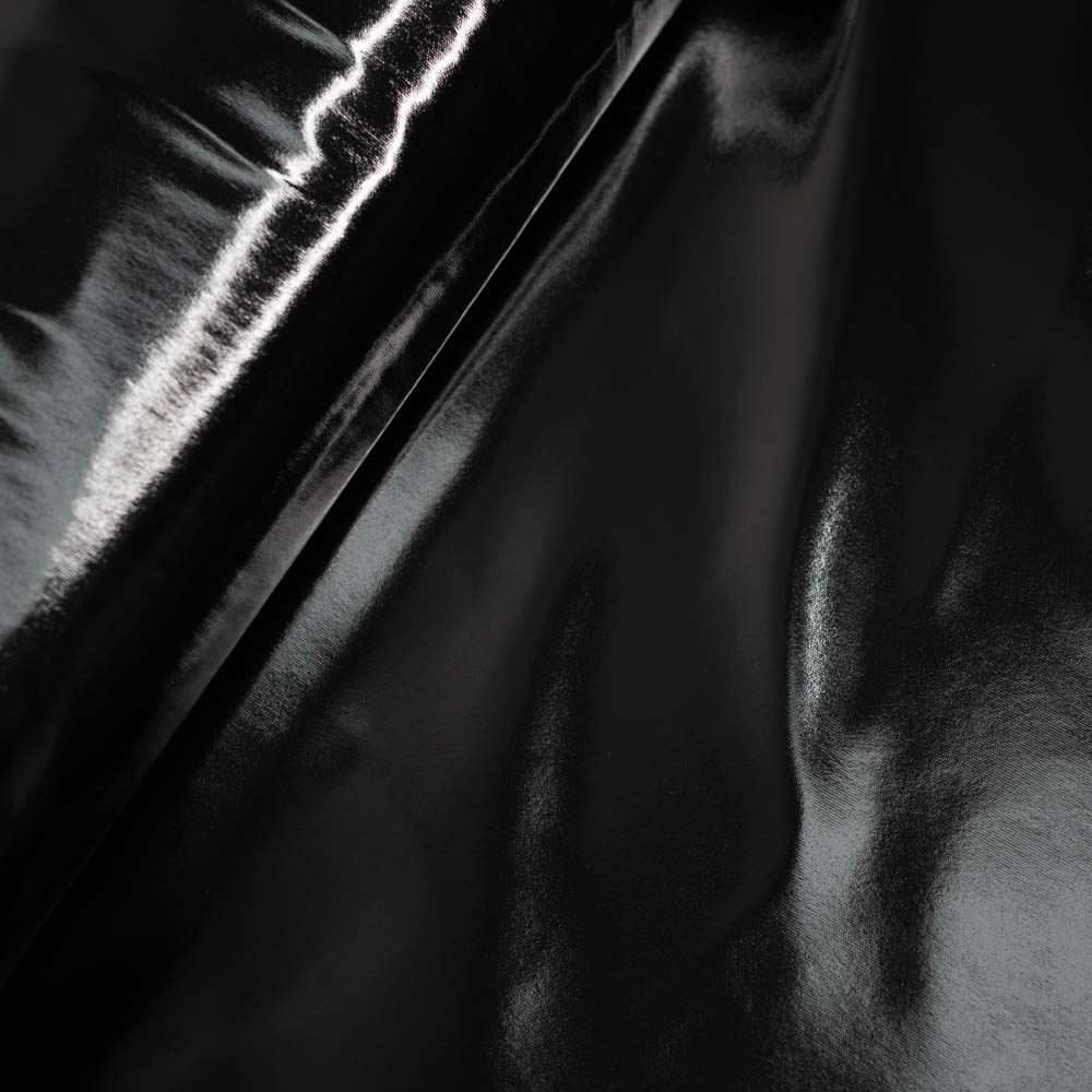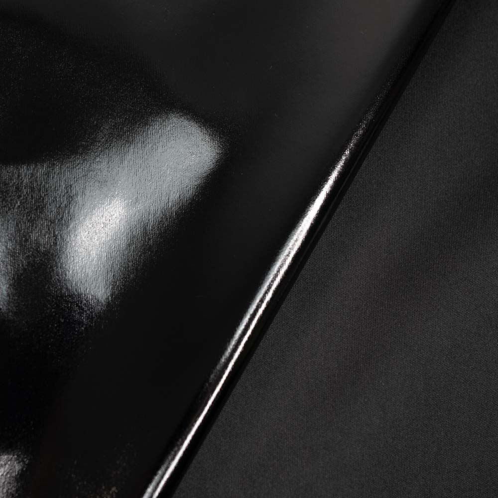 Ein Lackleder-Imitat mit einer glatten, spiegelnden Hochglanz-Oberfläche und einer leichten Elastizität durch die Geweberückseite. Das Material ist dünn, flexibel und angenehm zu verarbeiten, vielseitig einsetzbar für Deko, Kostüme & Bekleidung