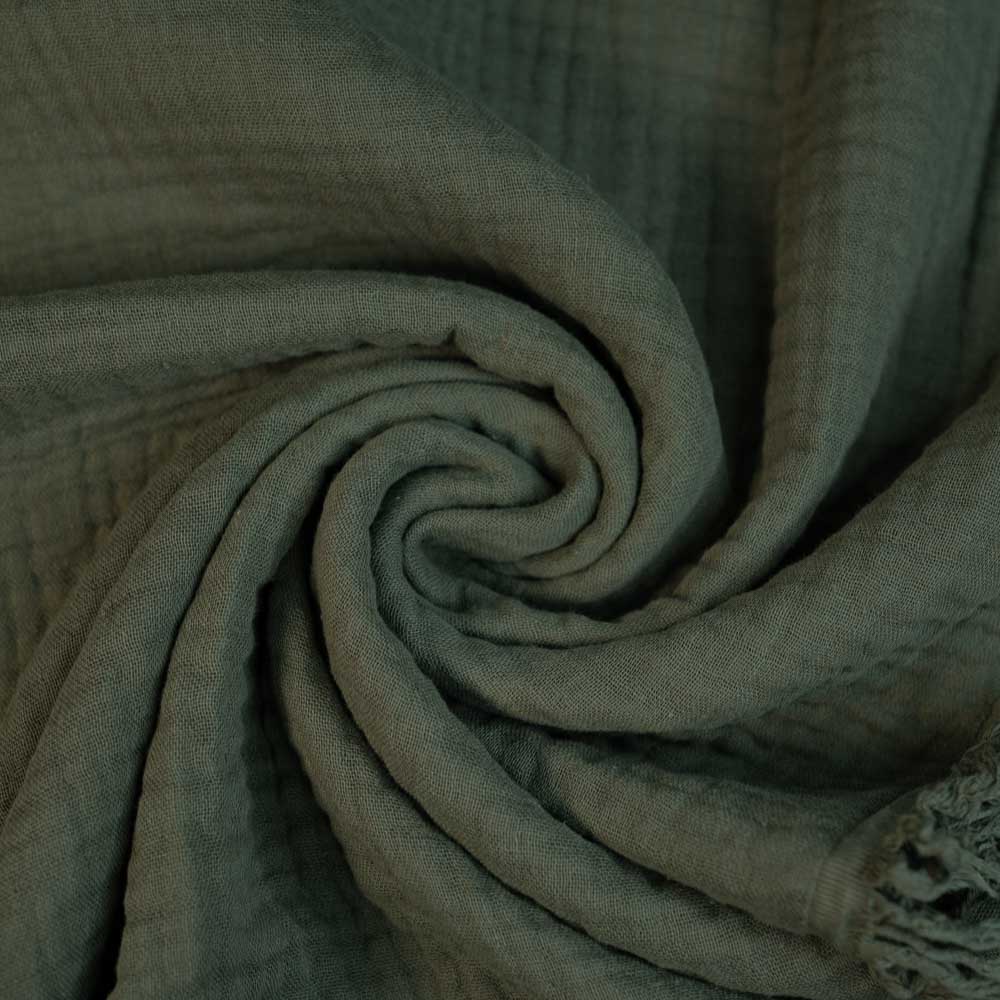 Dieser vierlagige Musselin Stoff aus Baumwolle hat eine dekorative Fransenkante (An beiden Webkanten). Insgesamt ist Musselin Baumwolle eine hervorragende Wahl für verschiedenste Textilprodukte z.B. Baby- und Dreieckstücher, Oberbekleidung, wie Hemden, Blusen, Kleider, Röcke, sowie für Deko, Accessoires, Bettwäsche, Vorhänge, Kissenbezüge etc.