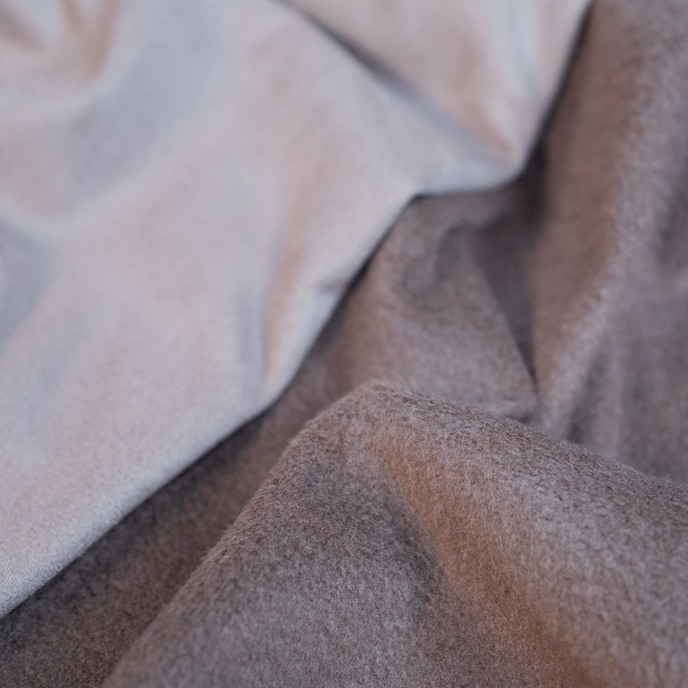 Ein super softes Veloursimitat mit einer kuscheligen Fleece Rückseite, bestens geeignet für Mäntel, Westen und mehr.