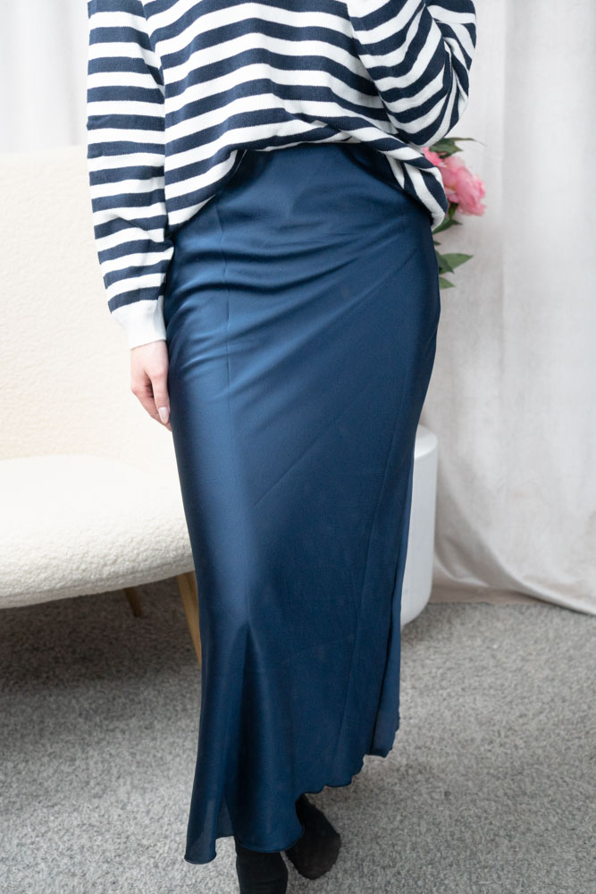 Schön fließender Maxi Satinrock mit Gummizug in der Taille -Made in Italy-.